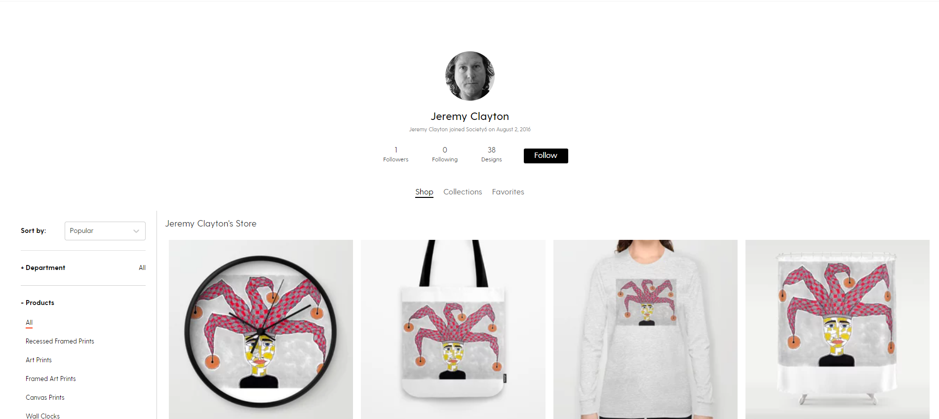 For individuals who are not interested in owning an original, I currently sell my artworks on all kinds of items such as t- shirts, hoodies, dresses, coffee cups and travel mugs, and all kinds of gadget covers on Redbubble and Society6.